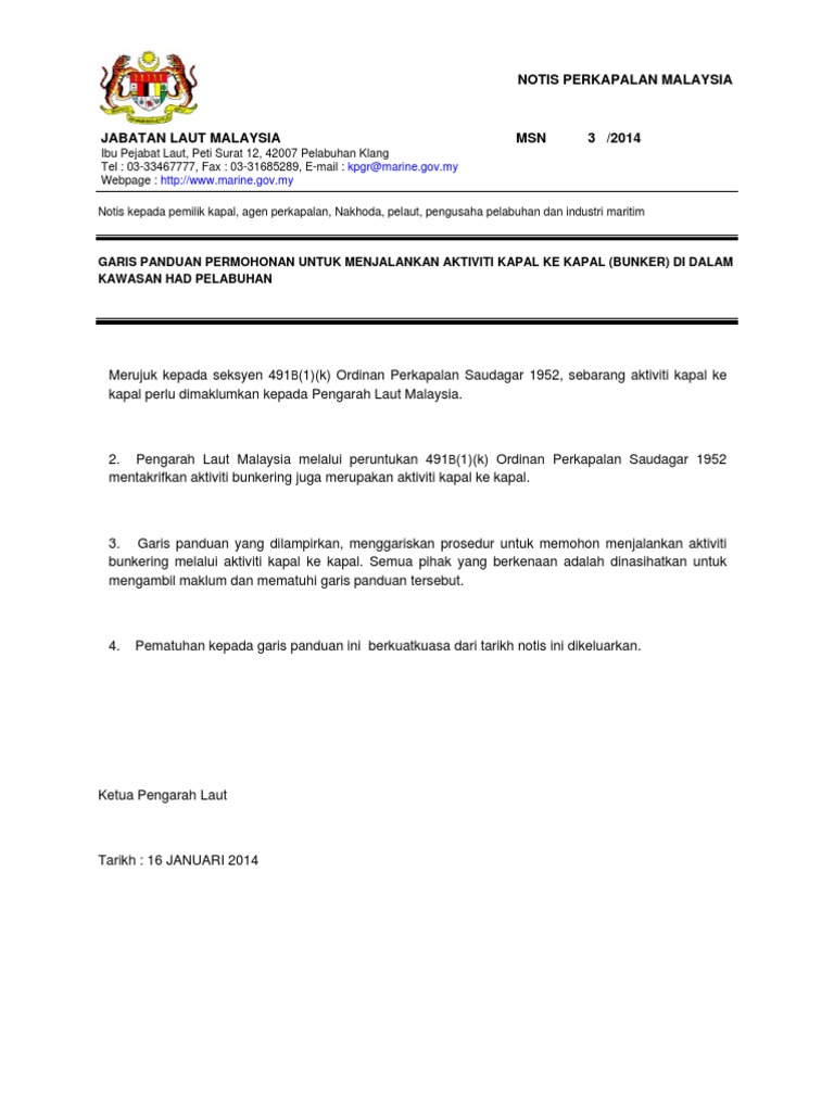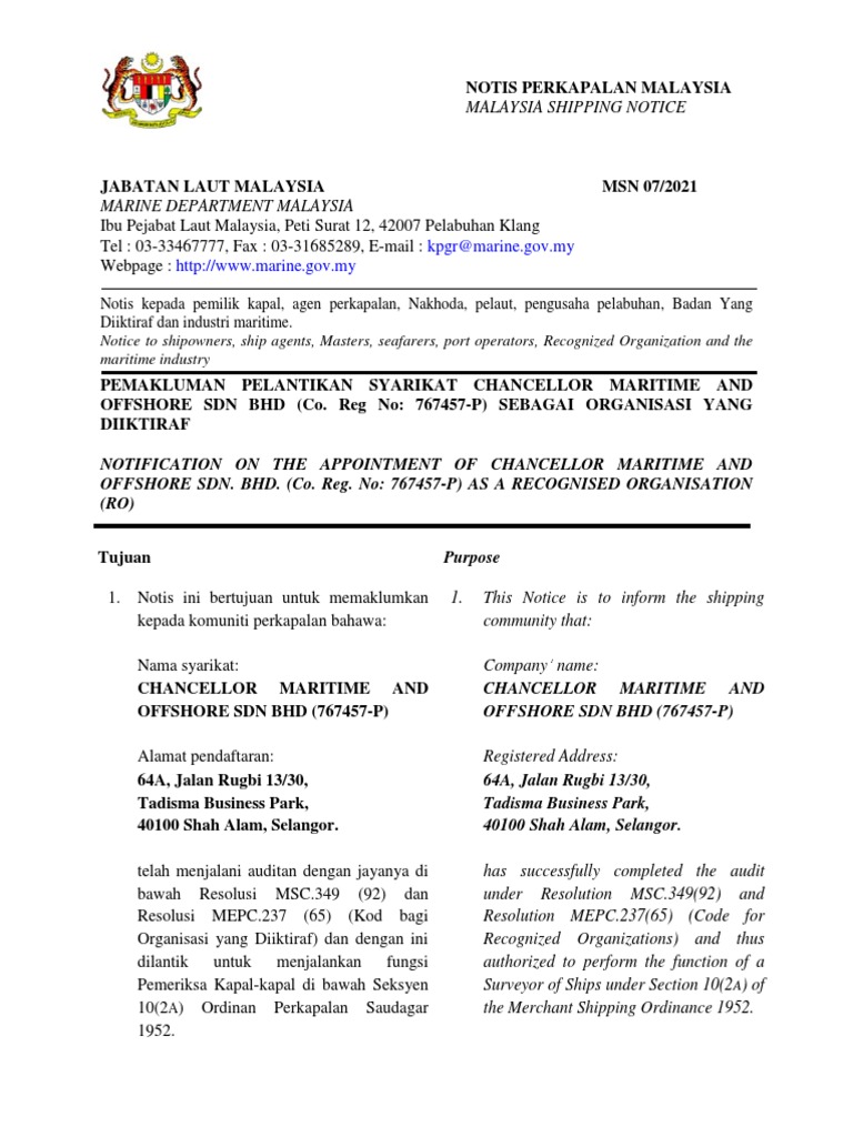 Jabatan Laut Malaysia Malaysian Shipping Notice